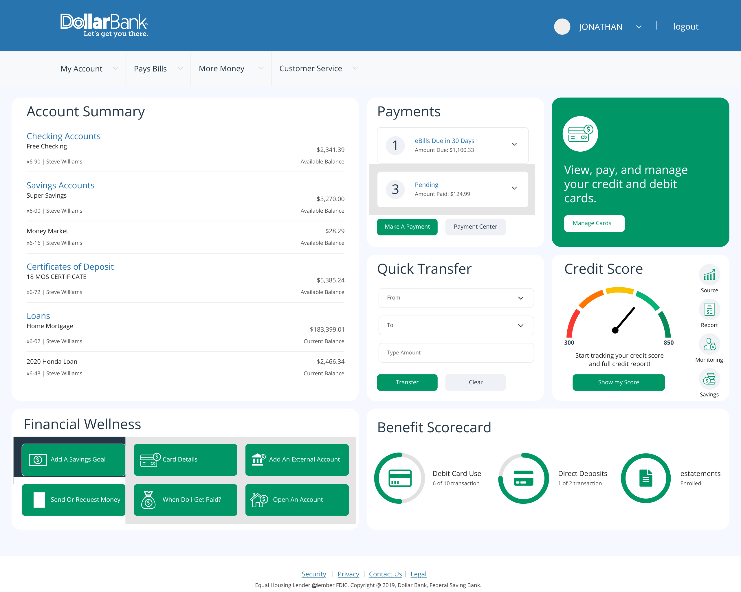 Dollar Bank Account Summary Redesign